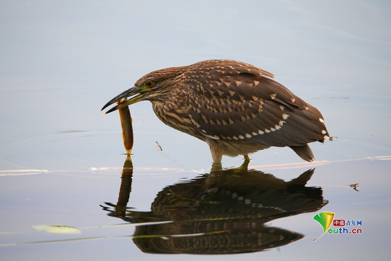 Пекин, 18 сентября (Youth.cn) - 16 сентября 2025 года на поверхности воды водно-болотного парка Сихай в Пекине птицы грациозно танцевали. Фото/CFP