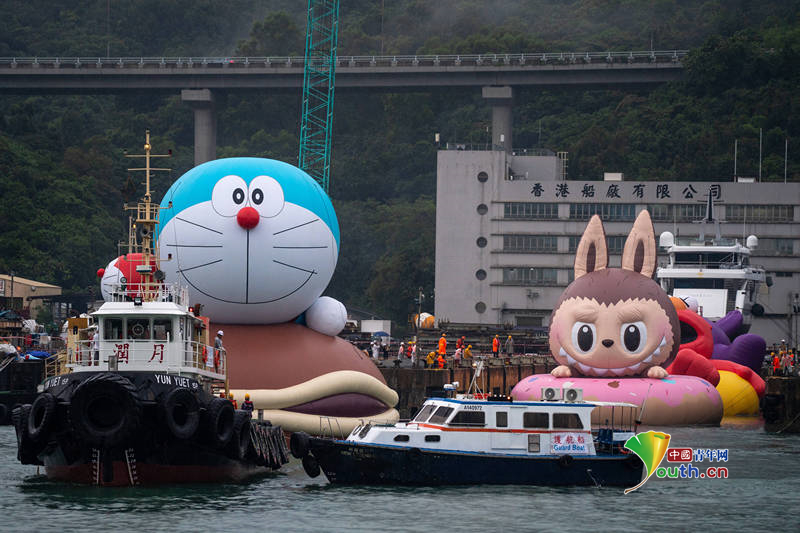 Пекин, 23 сентября (Youth.cn) - 20 сентября 2025 года в Сянгане в гавани Виктория дебютировали гигантские надувные инсталляции. Фото/CFP