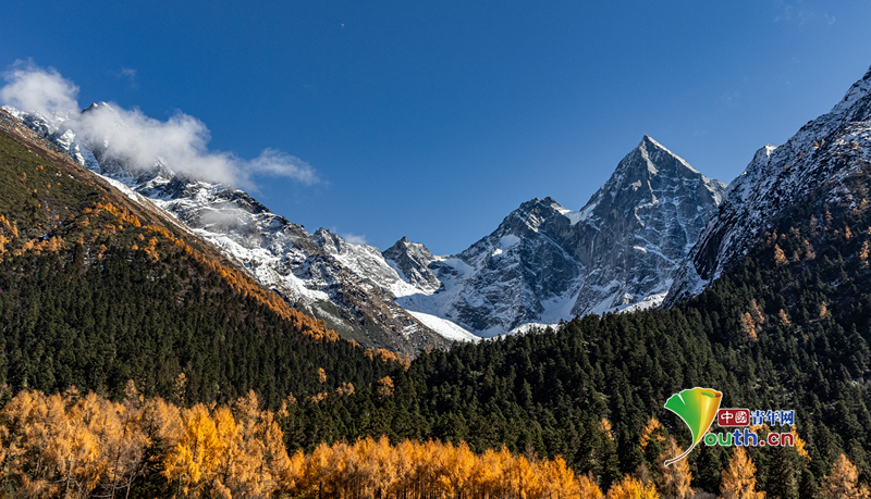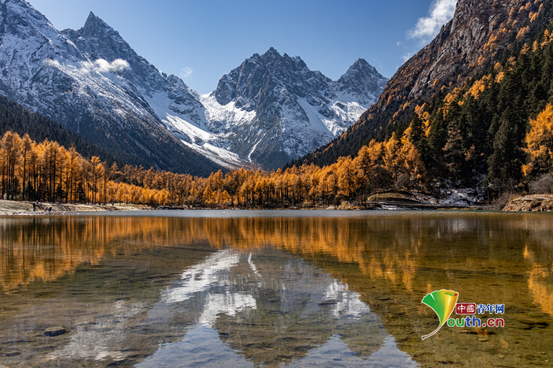 Пекин, 19 ноября (Youth.cn) - 8 ноября 2025 года в Аба-Тибетско-Цянском автономном округе провинции Сычуань. Октябрь и ноябрь дарят самые прекрасные пейзажи западной части Сычуани, где сочетание снежных вершин и золотистого цвета создает самые поэтичные виды на континенте. Фото/CFP