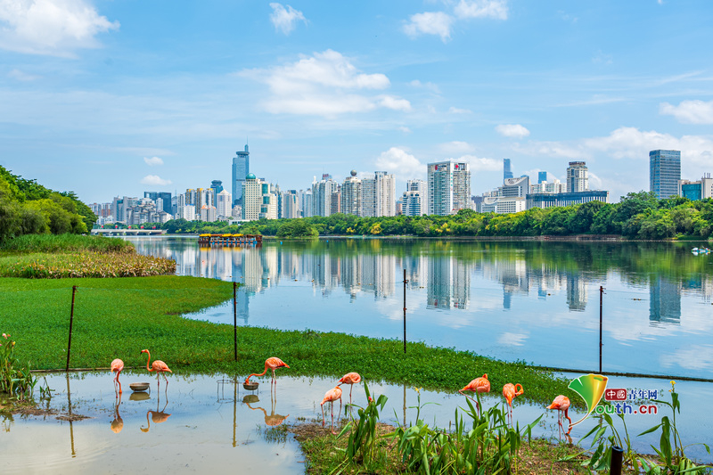 Пекин, 29 сентября (Youth.cn) - 27 сентября 2025 года в парке Наньху в городе Наньнин Гуанси-Чжуанского автономного района фламинго неспешно расположились на своих местах, привлекая горожан останавливаться и фотографироваться. Фото/CFP