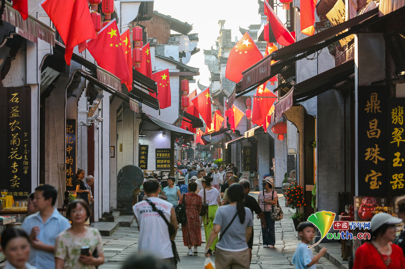 Пекин, 29 сентября (Youth.cn) - В преддверии Дня образования КНР и Праздника середины осени по всему Китаю пятизвездочные красные флаги, создавая праздничную атмосферу. Фото/CFP
