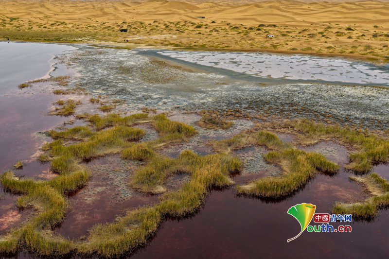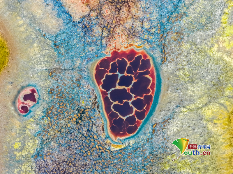 Пекин, 9 октября (Youth.cn) - 6 октября 2025 года в лиге Алша, автономный район Внутренняя Монголия, вид с воздуха на озеро Улан. Это 《Сердце Земли》. Фото/CFP