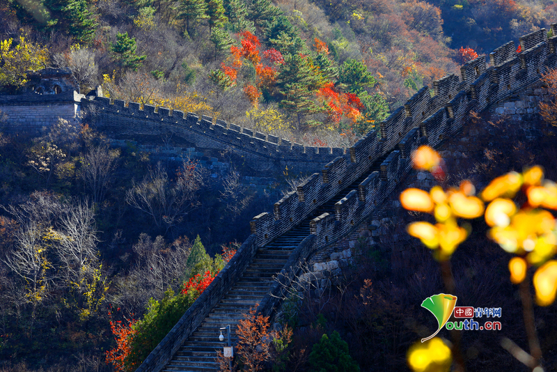 Пекин, 10 ноября (Youth.cn)- 9 ноября 2025 года в районе Хуайжоу Пекина живописная зона Великой Китайской стены у озера Сяншуй представляет собой захватывающий дух вид в начале зимы. Фото/CFP