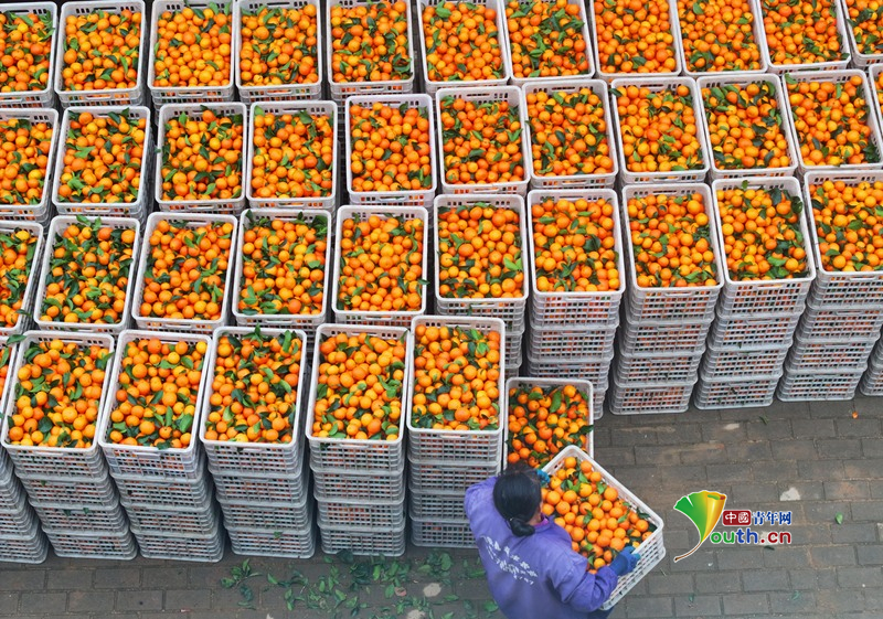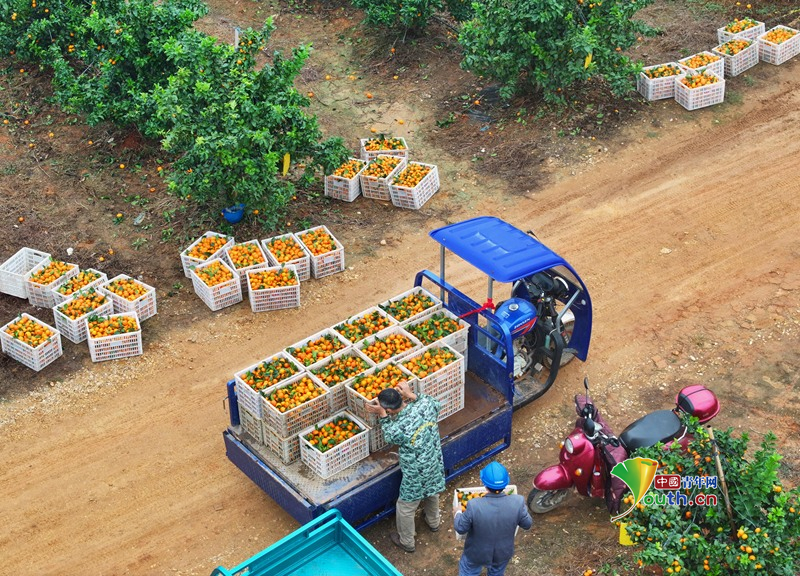 Пекин, 12 ноября (Youth.cn) - 9 ноября 2025 года на плантации сахарных апельсинов в городе Цзиань провинции Цзянси фермеры собирают урожай спелых плодов. Фото/CFP