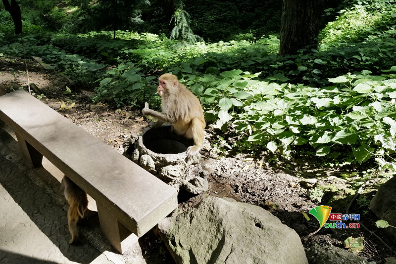 15 июля 2025 года на тропе от горы Шибао к храму Баосян в уезде Цзяньчуань Дали-Байского автономного округа провинции Юньнань была замечена стая диких макак. Фото/CFP