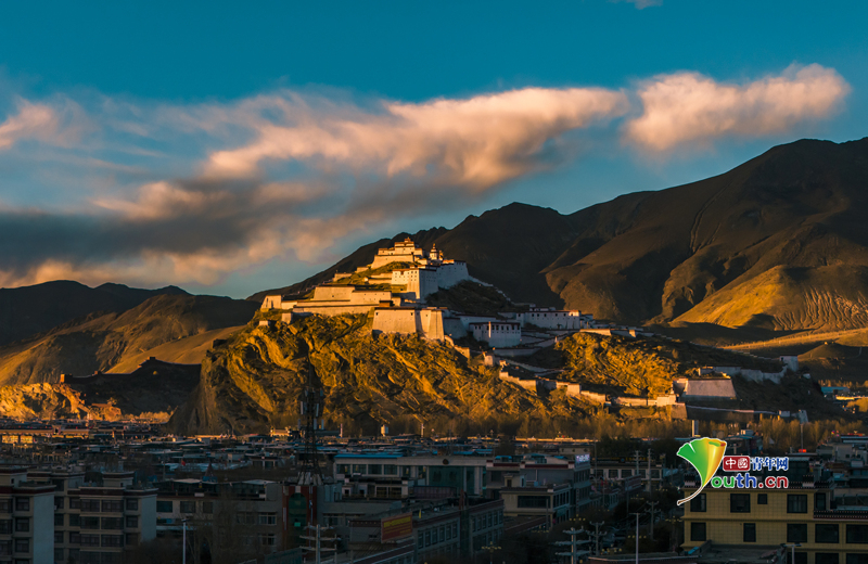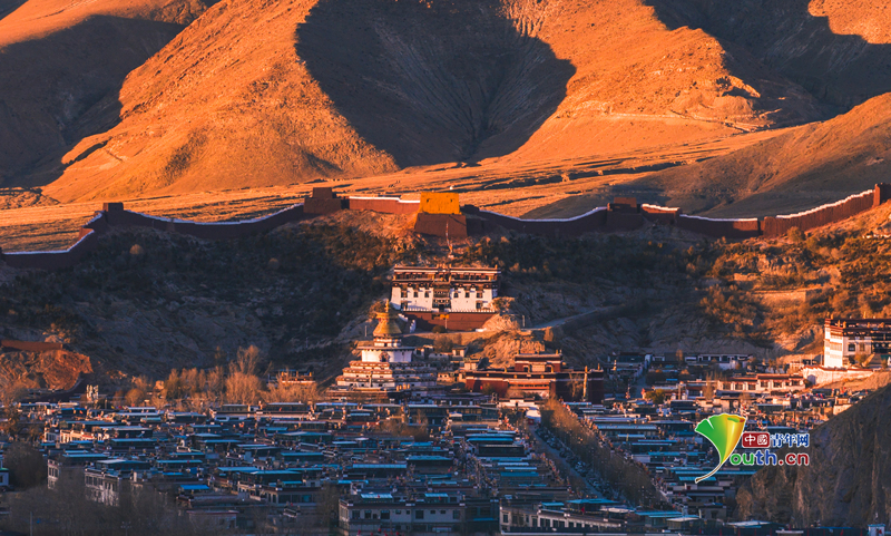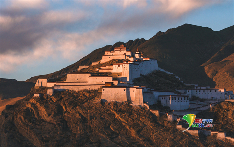 Пекин, 24 ноября (Youth.cn) - 18 ноября 2025 года луч закатного солнца осветил замок Цзуншань в уезде Цзянцзы города Шигадзе Сицзанского автономного района, создав удивительную световую тень. Фото/CFP