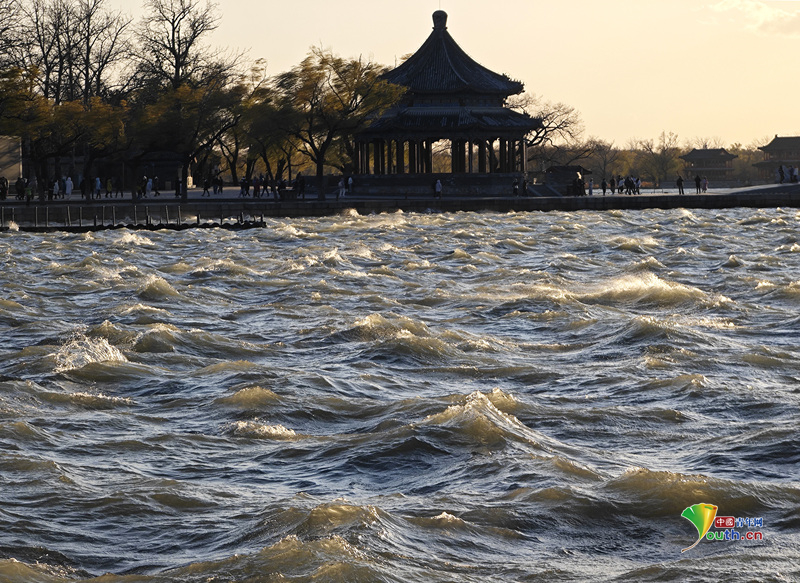 Пекин, 26 ноября (Youth.cn) - 24 ноября в Пекине ветер поднял белоснежные волны на озере Куньмин в Летнем дворце. Фото/CFP