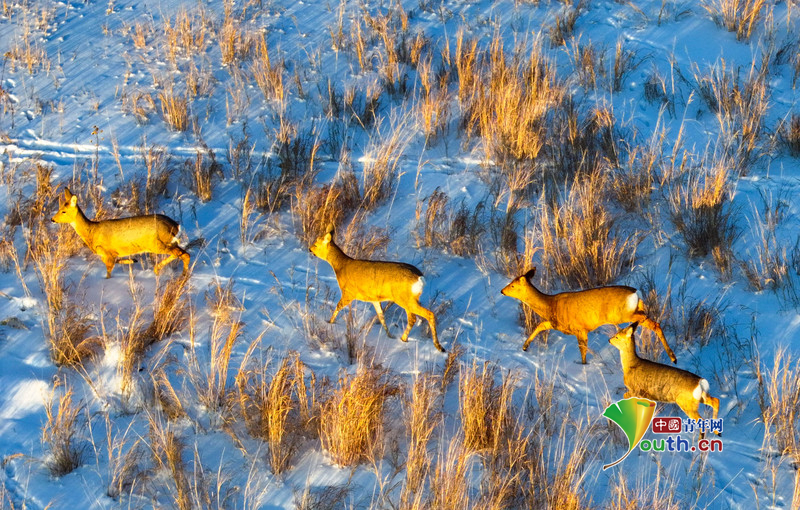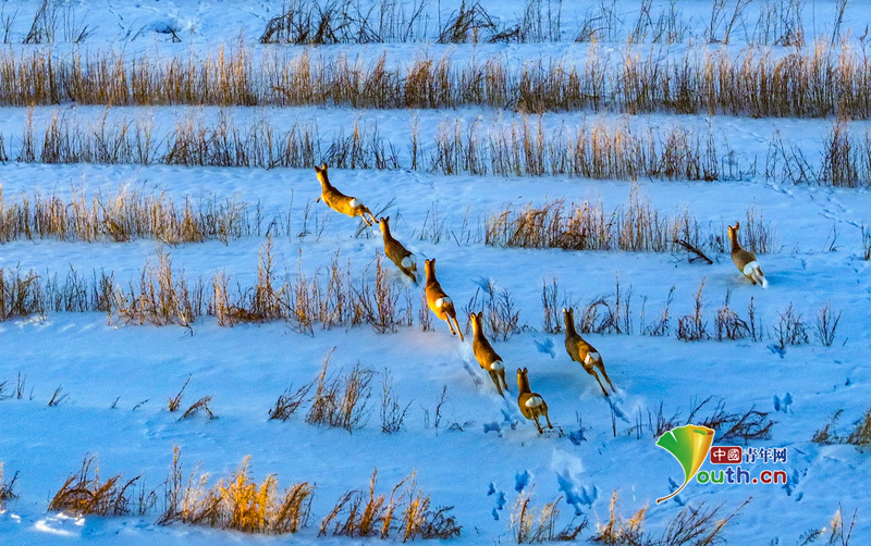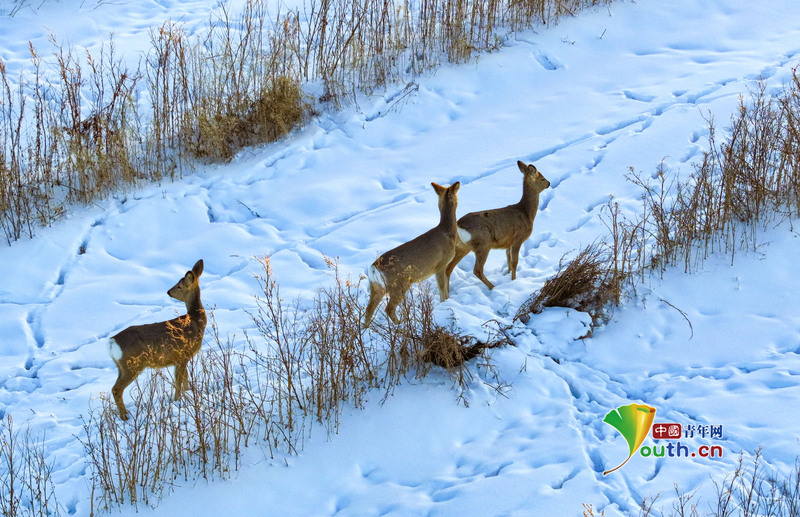 Пекин, 30 декабря (Youth.cn) - 28 декабря 2025 года дикие косули были замечены бегущими по заснеженному полю в автономном районе Внутренняя Монголия. Фото/CFP