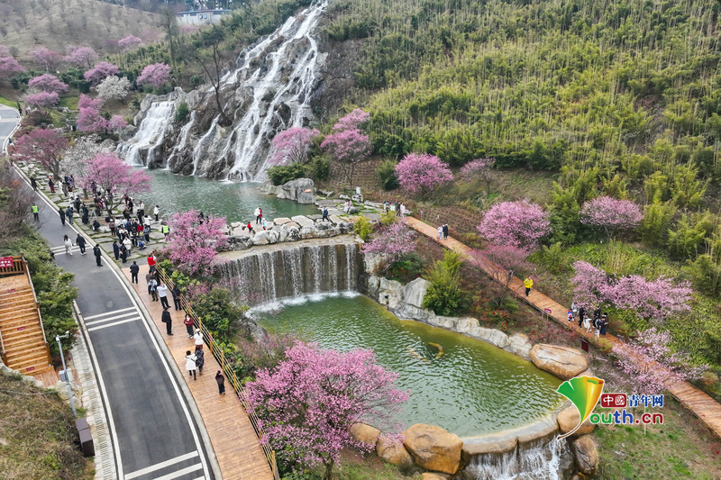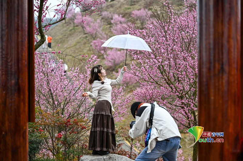 Пекин, 27 января (Youth.cn) - 25 января 2026 года посетители делают селфи на фоне цветущей зимней сливы в сливовом саду провинции Гуйчжоу. Недавно более 50,000 зимних сливовых деревьев в саду были в полном цвету, привлекая туристов для фотографирования. Фото/CFP