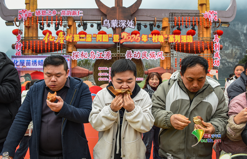 Пекин, 4 февраля (Youth.cn) - 3 февраля 2026 года в деревне Хуаву провинции Гуйчжоу прошли различные народные праздники, посвященные радостному приветствию Нового года по лунному календарю. Фото/CFP