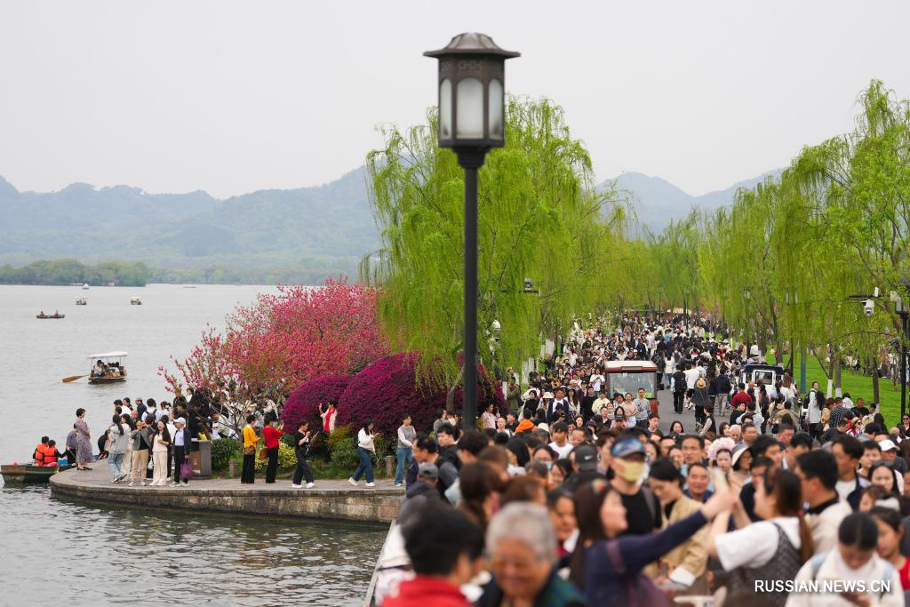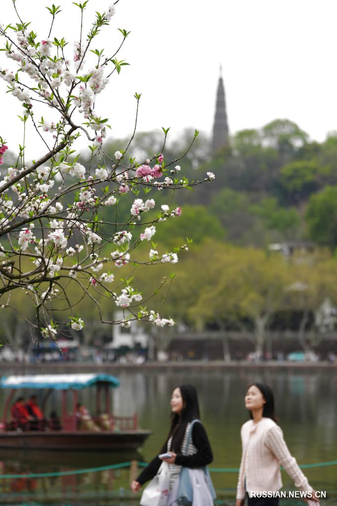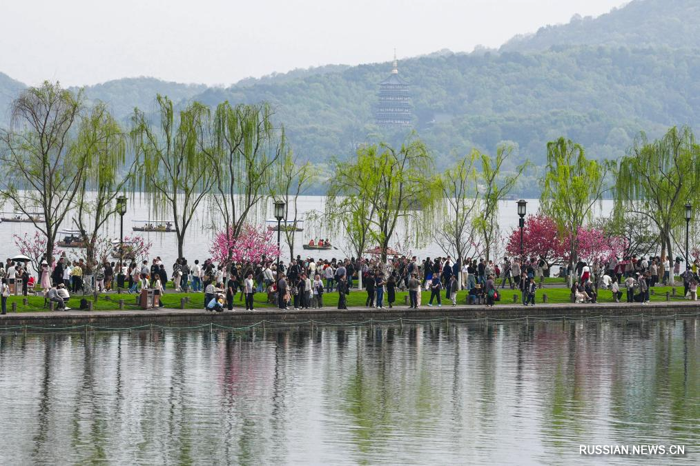 Ханчжоу, 3 апреля /Синьхуа/ -- В последние дни озеро Сиху в городе Ханчжоу провинции Чжэцзян на востоке Китая привлекает многочисленных посетителей красивым весенним пейзажем.