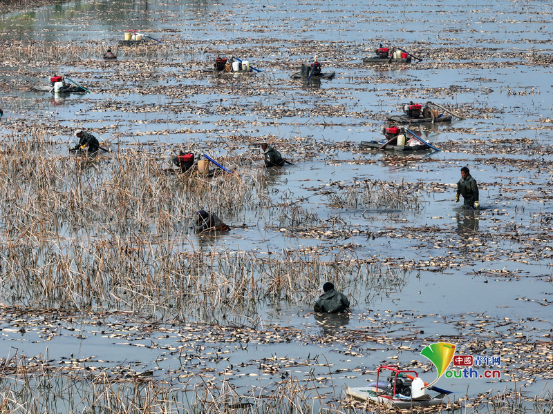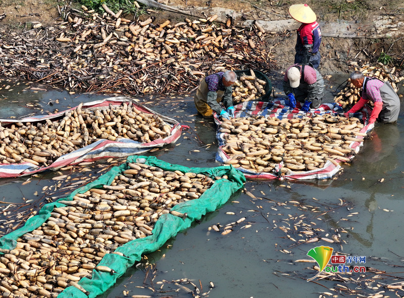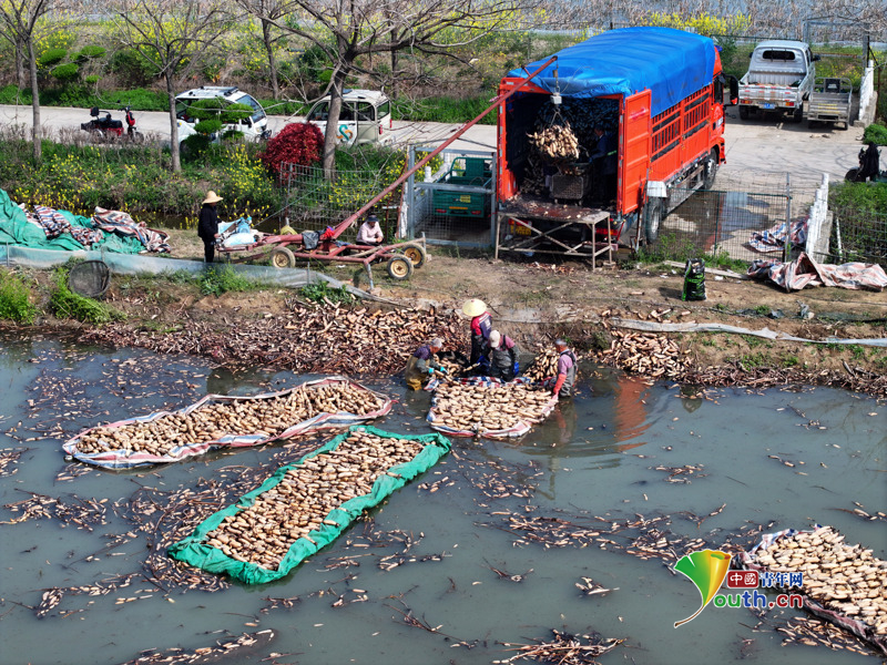 Пекин, 7 апреля (Youth.cn) - 2 апреля 2026 года в уезде Мэнчэн провинции Аньхой фермеры деревни Дайяо собирали корни лотоса для транспортировки на рынки других регионов, что дало мощный импульс возрождению сельских районов. Фото/CFP