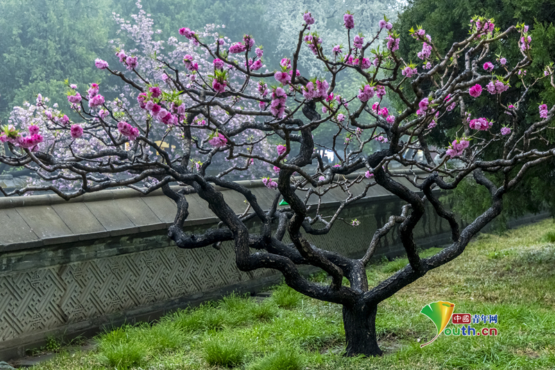 Пекин, 22 апреля (Youth.cn) - 16 апреля 2026 года в Пекине цветущие персиковые деревья в Летнем дворце представляли собой потрясающе красивую картину. Фото/CFP