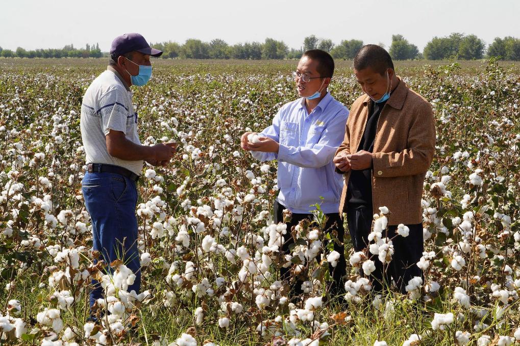 24 сентября 2020 года, Сырдарьинская область, Узбекистан. Китайские специалисты рассказывают хлопкоробу из Узбекистана о китайской технологии капельного орошения. /Фото: Синьхуа/