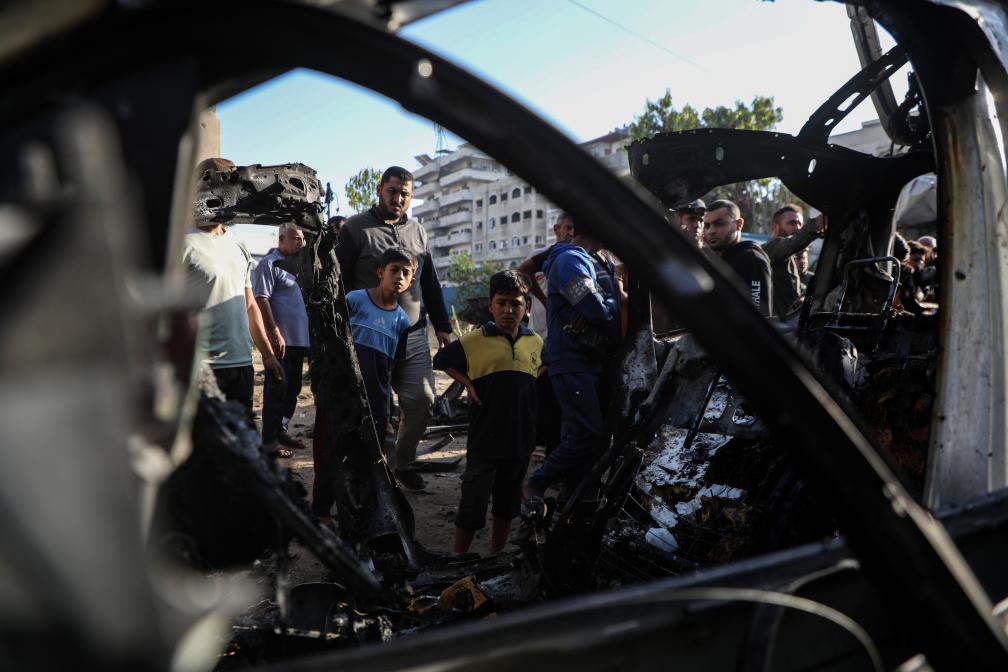 22 ноября, Газа. Палестинцы у разрушенного автомобиля в городе Газа. /Фото: Синьхуа/