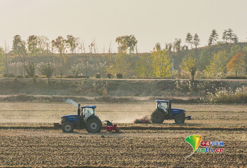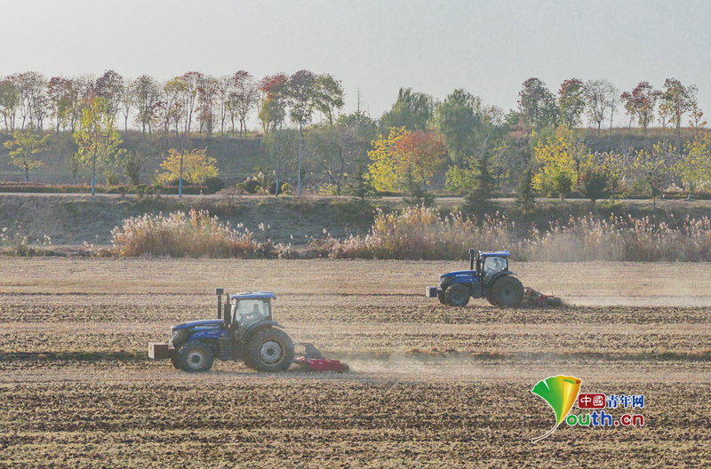 Пекин, 1 декабря (Youth.cn) - 27 ноября 2025 года в городе Суцянь провинции Цзянсу несколько сеялок курсировали туда-сюда для ускоренного сева озимой пшеницы. Фото/CFP
