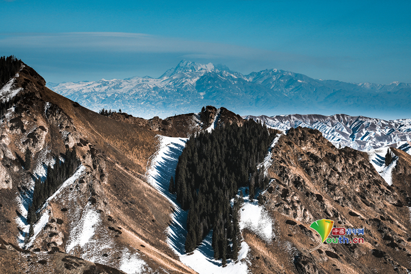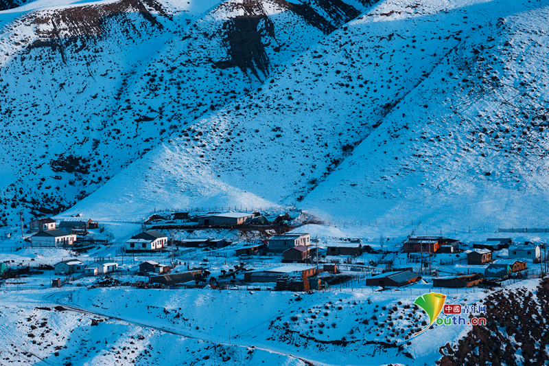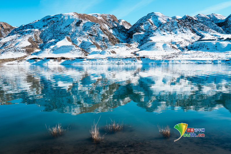 Пекин, 2 декабря (Youth.cn) - 30 ноября 2025 года, снежный пейзаж в долине реки Тоутунь, Чанцзи-Хуэйский автономный округ, Синьцзян. Вода водохранилища Лоучжуанцзы напоминает голубой нефрит, а заснеженные вершины гор идеально отражаются в ее поверхности, создавая идиллическую картину. Фото/CFP