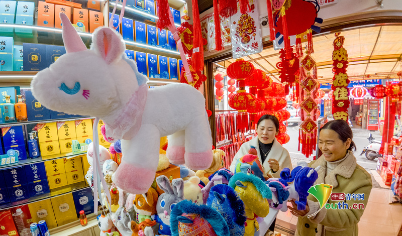 Пекин, 5 февраля (Youth.cn) - 28 января 2026 года, в преддверии Праздника весны, рынок Улюшу в городе Чжицзян провинции Хубэй был наполнен праздничной атмосферой. Разнообразные благоприятные украшения к году Лошади быстро раскупались, поскольку жители стекались на рынок, чтобы купить их, выражая свои надежды на новый год. Фото/CFP