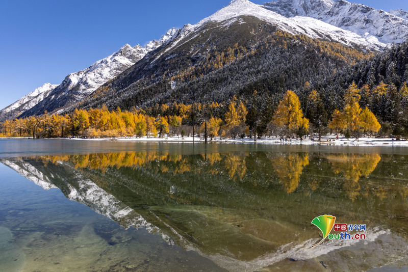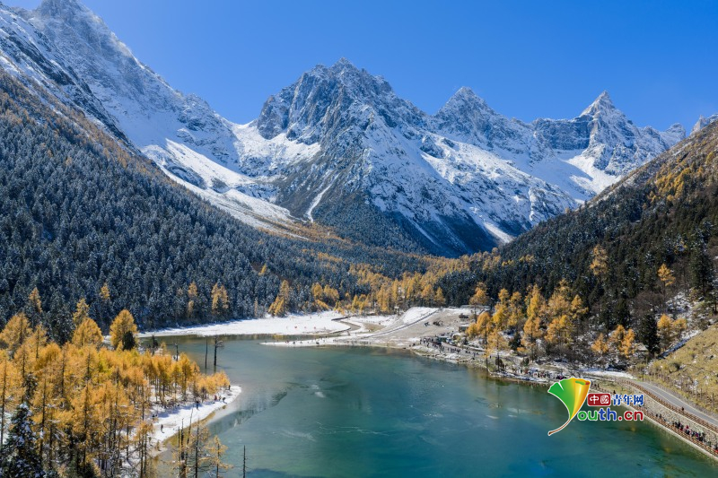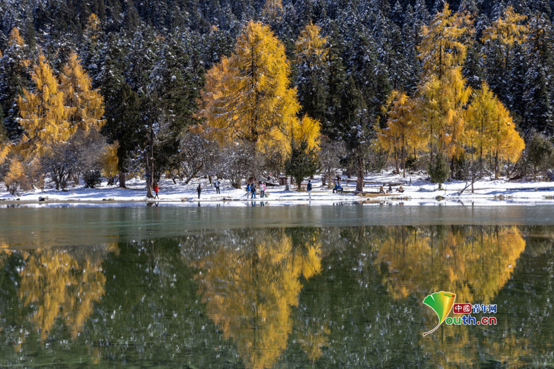 Пекин, 12 ноября (Youth.cn) - 4 ноября 2025 года в живописном районе Бипэнгоу провинции Сычуань ясное небо после снегопада создало картину, напоминающую осеннюю сказку, привлекающую туристов. Фото/CFP
